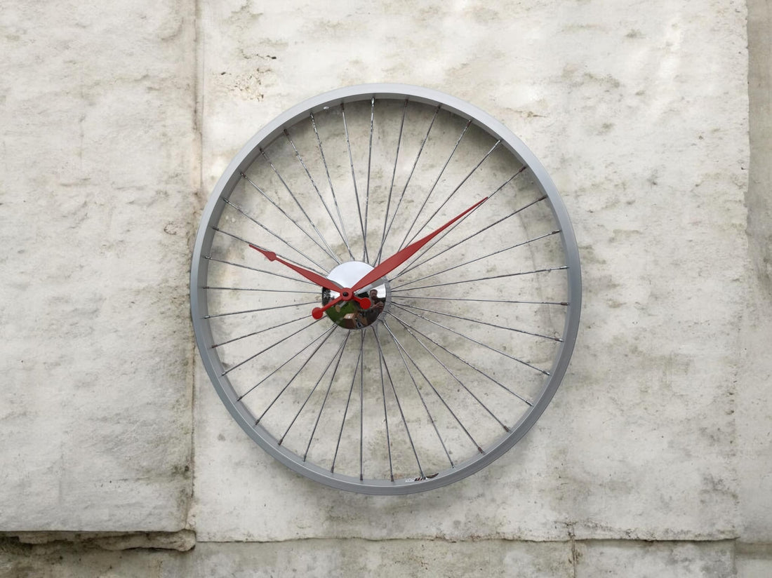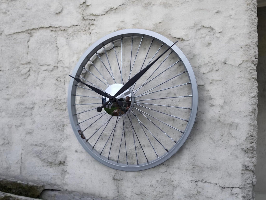 Discounted - Handmade 42cm Bike Wheel Wall Clock – Bicycle Rim Clock with Rustic Patina