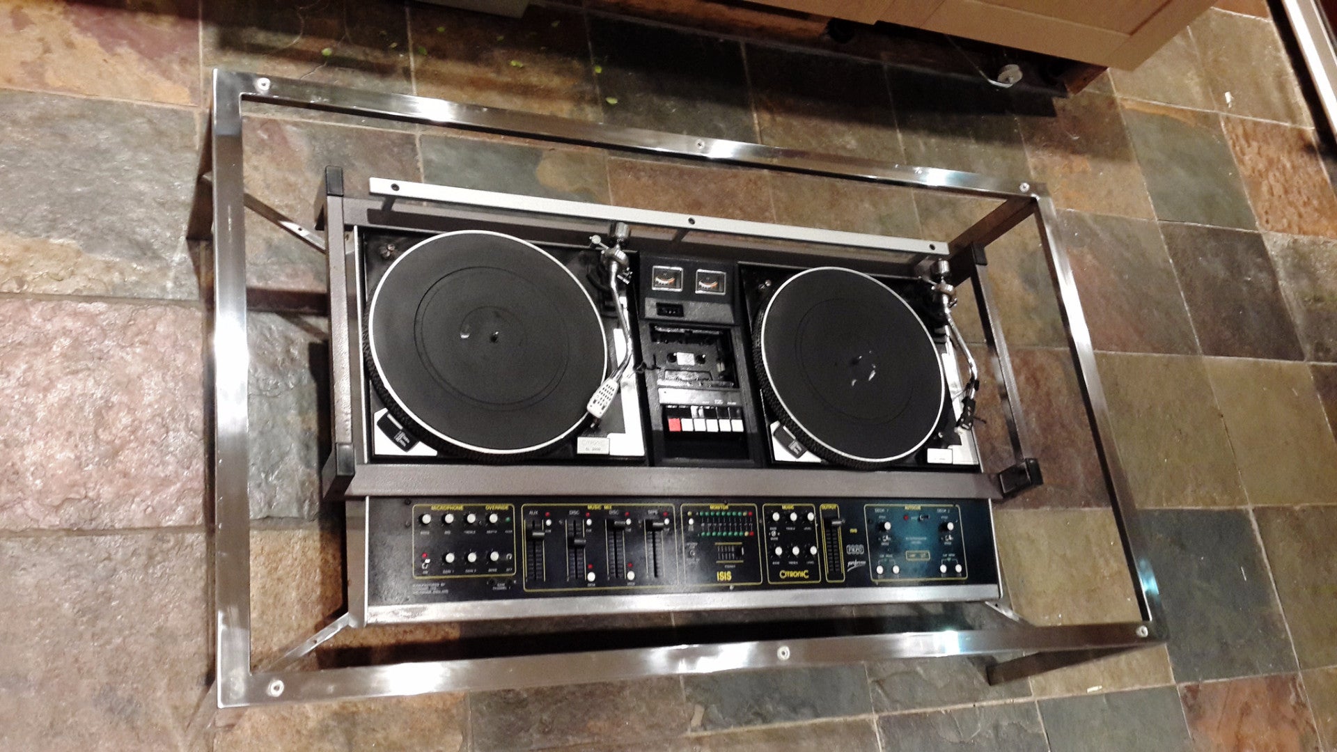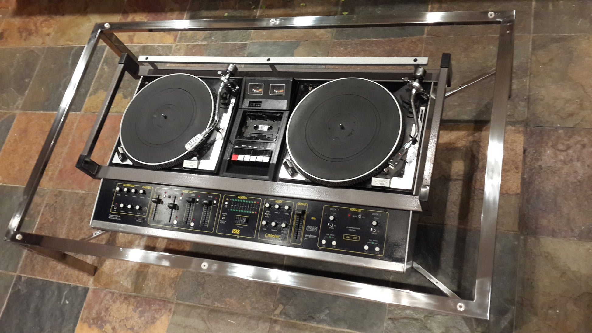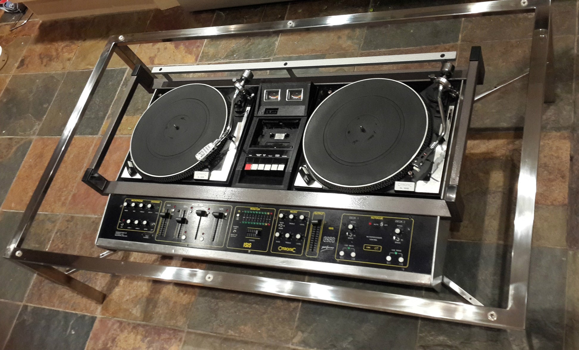 This is a retro twin DJ turntable decks which has been upcycled to this amazing one of a kind coffee table.