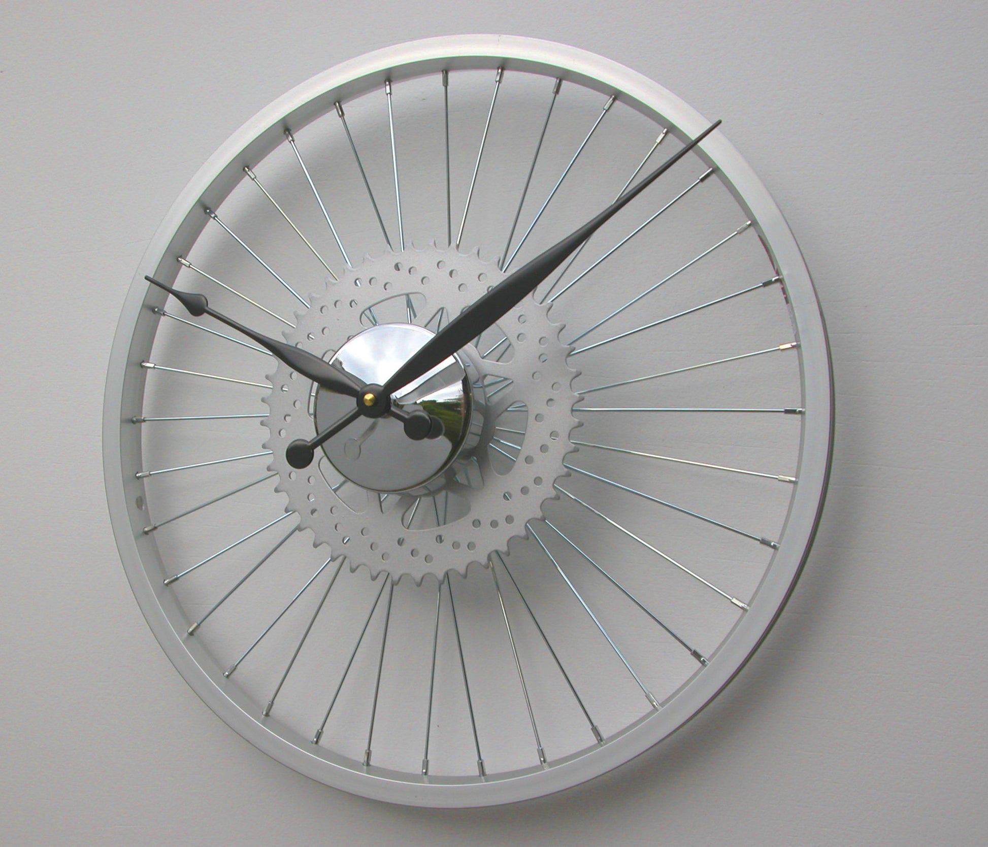 Silver Sprocket Bike Wheel Clock 45cm